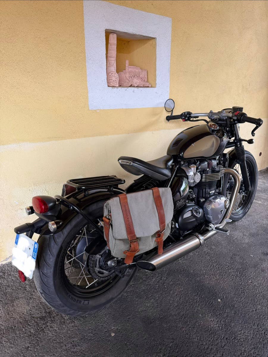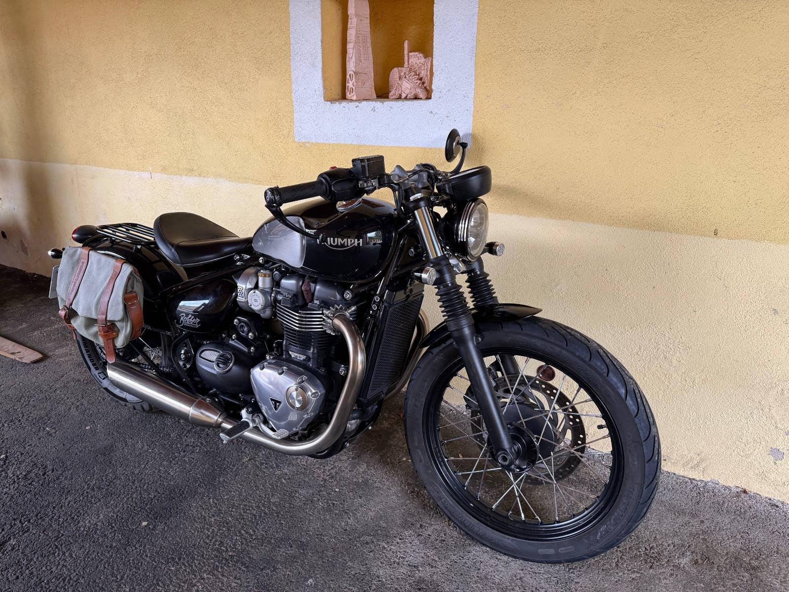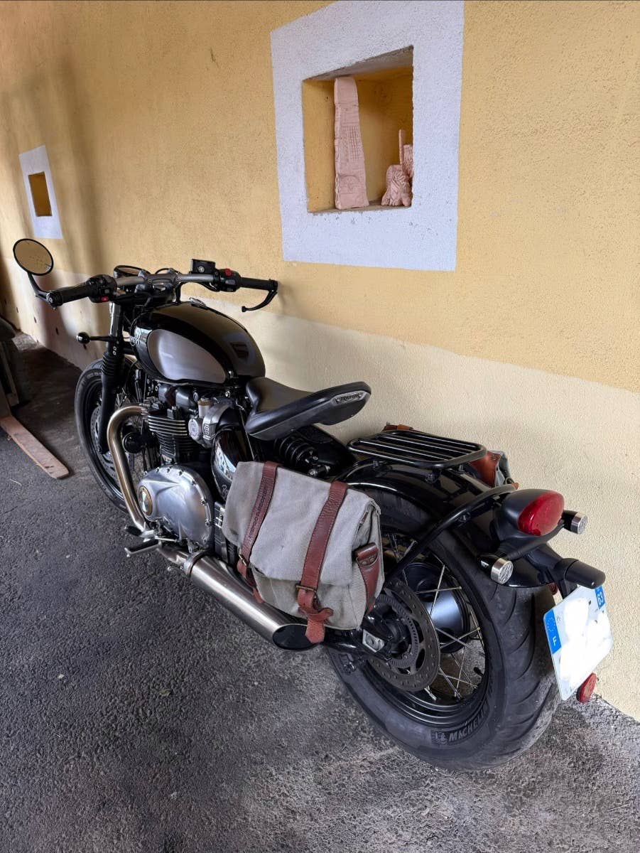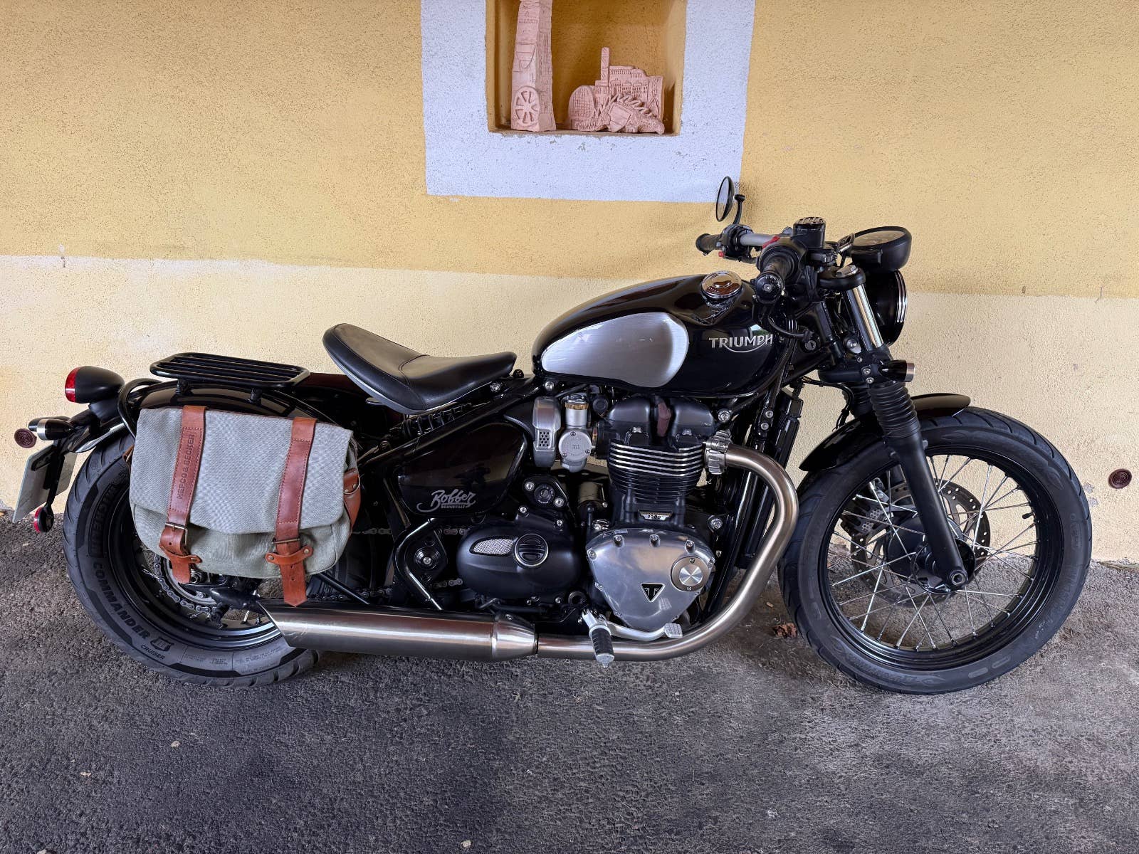 Lehce poškozený Triumph Bonneville Bobber 1200 2019, dle předchozího majitele nájezd +-30tkm, k motocyklu bohužel momentálně neni kliček! K dispozici je kliček pouze k taškám. Mimo poškození motocykl v moc hezkém stavu, obal tachometru bez poškození! Pouze prasklý aftermarket držáček, dorazy řízení ani nejsou obražené, viz foto. Monoho prémiových doplňku, zadní tlumič fox, prémiové směrovky, led originální přední světlo, krásné kvalitní tašky, všechny doplňky jsou v hodnotě 50tkc +